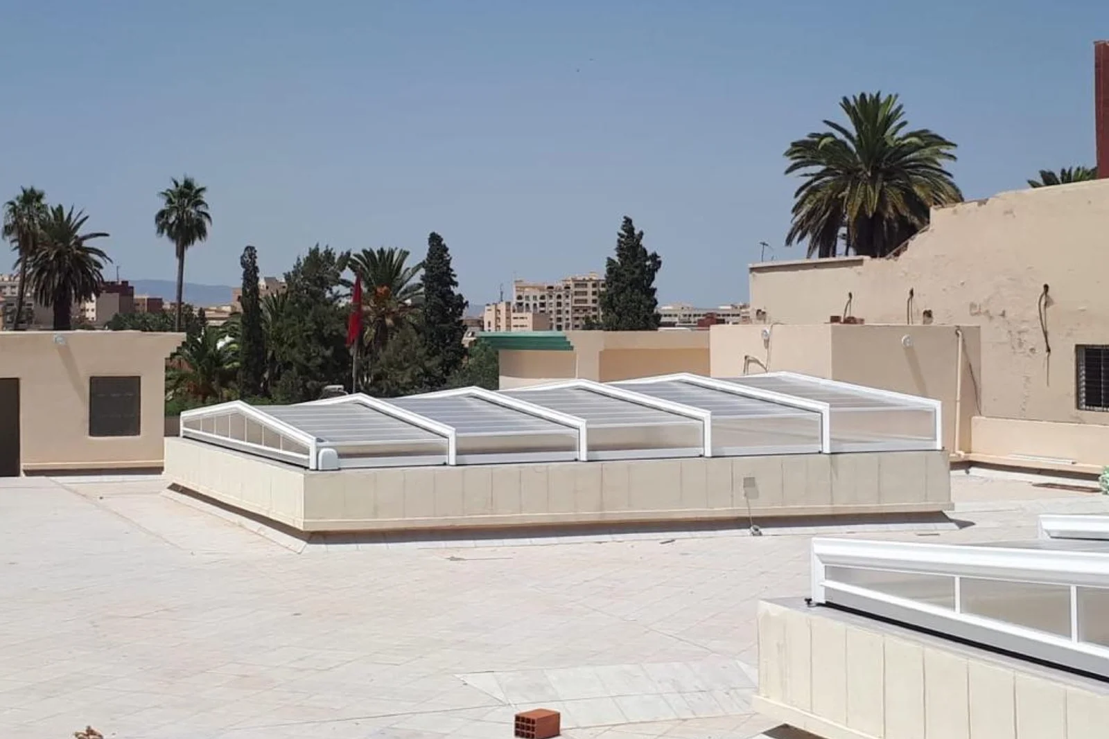 Abri de piscine télescopique bas à 3 angles : design minimaliste et simplicité d’utilisation